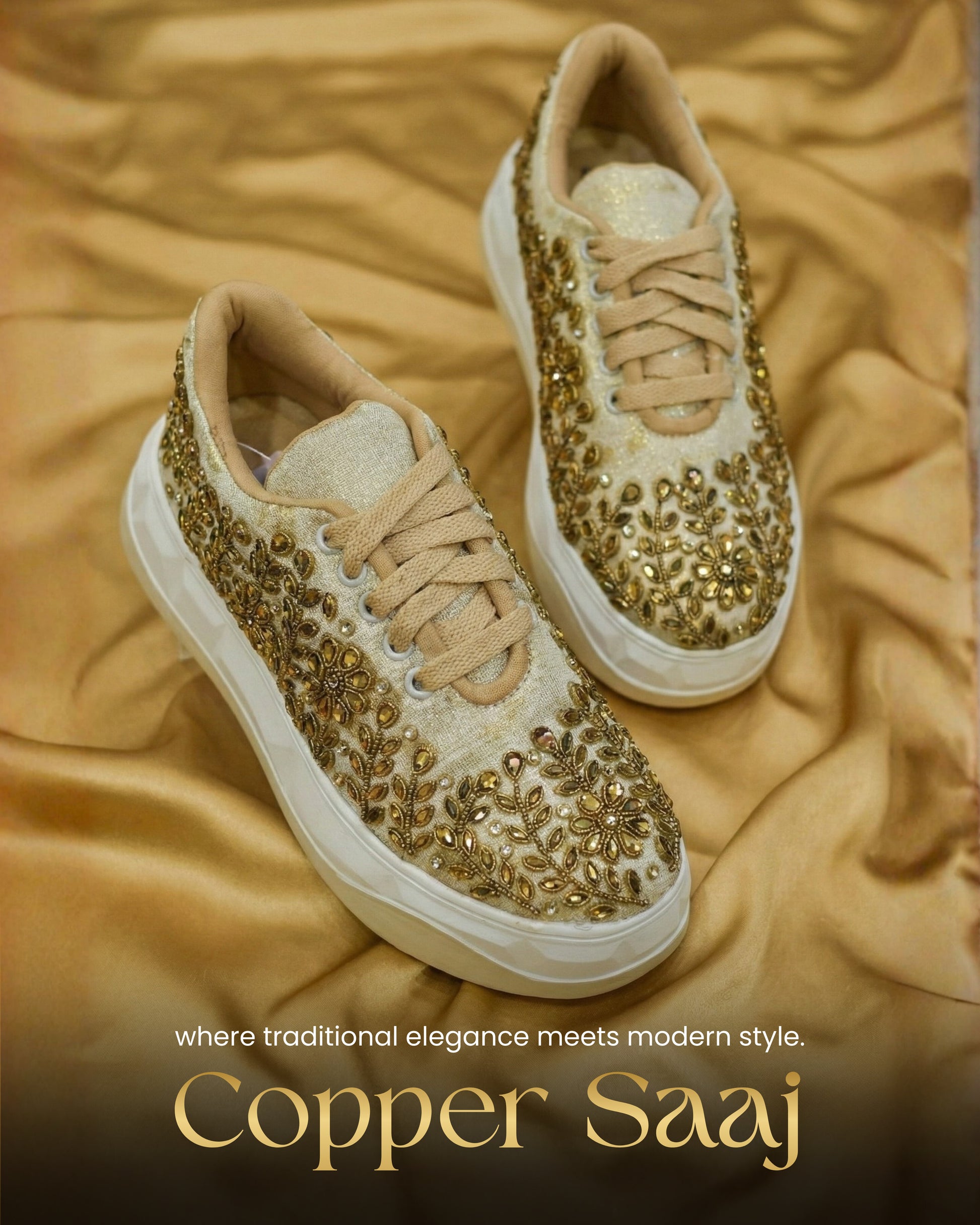 Copper Saaj-Gold Embellished Sneakers