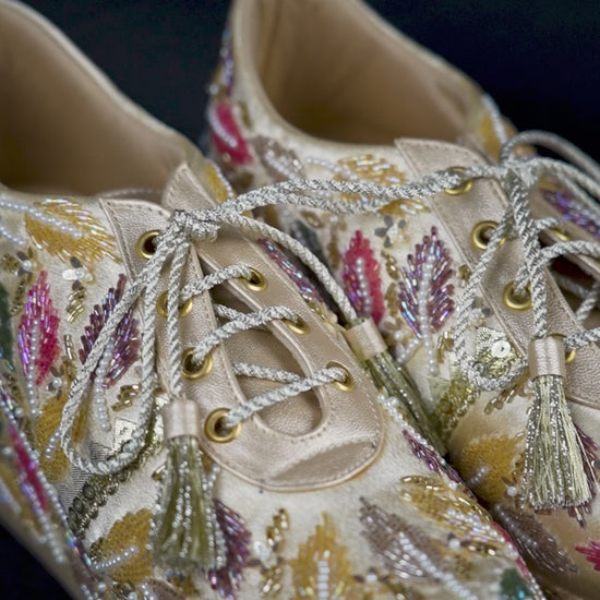 Golden Leaf-Multicolor Embroidered Gold Wedge