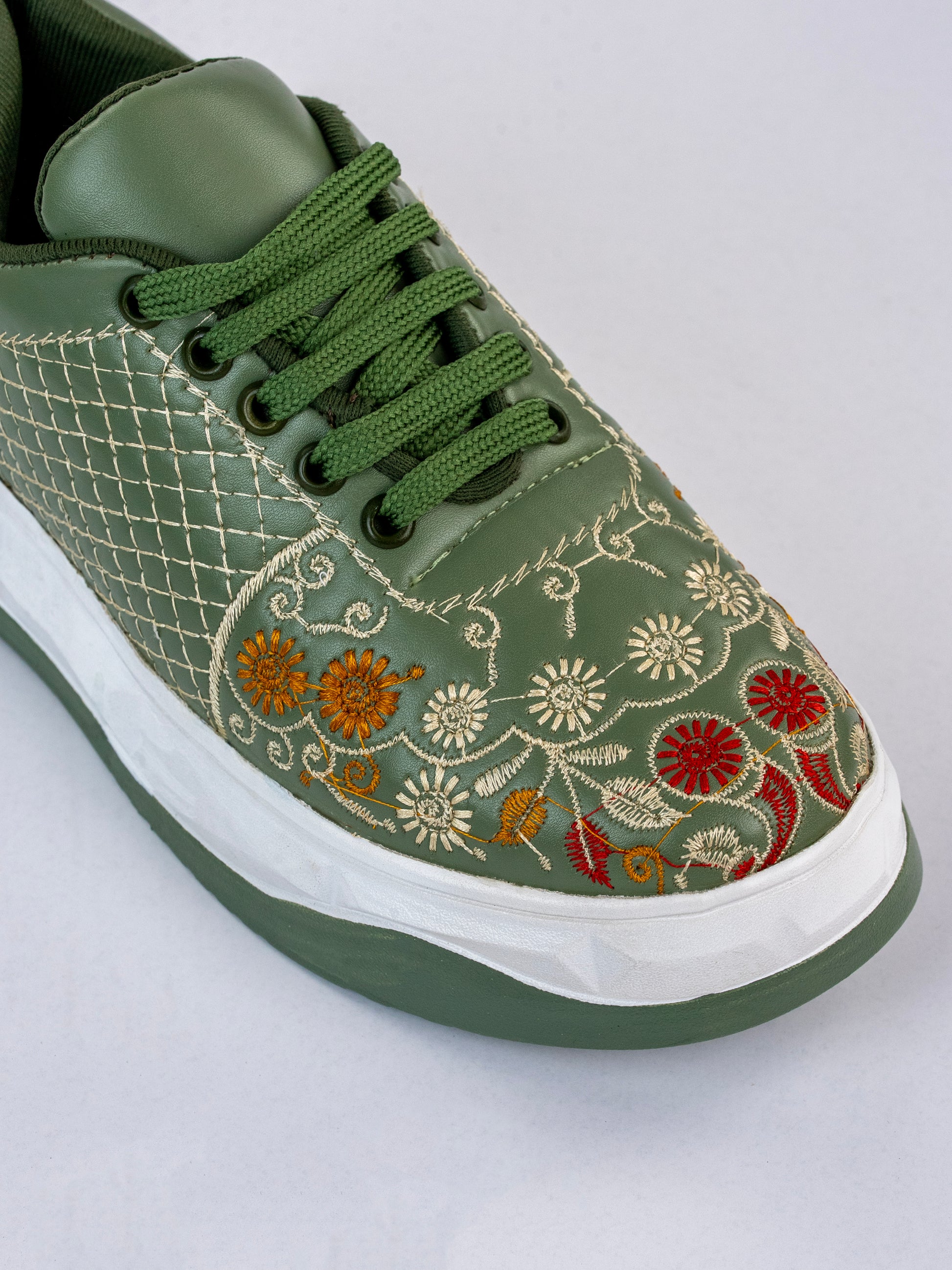 Green Zariya – Embroidered Leather Fusion Sneakers